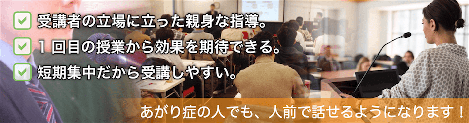 東京話し方教室は、数ある話し方教室の中でも、「あがり症克服」に特化した教室です。